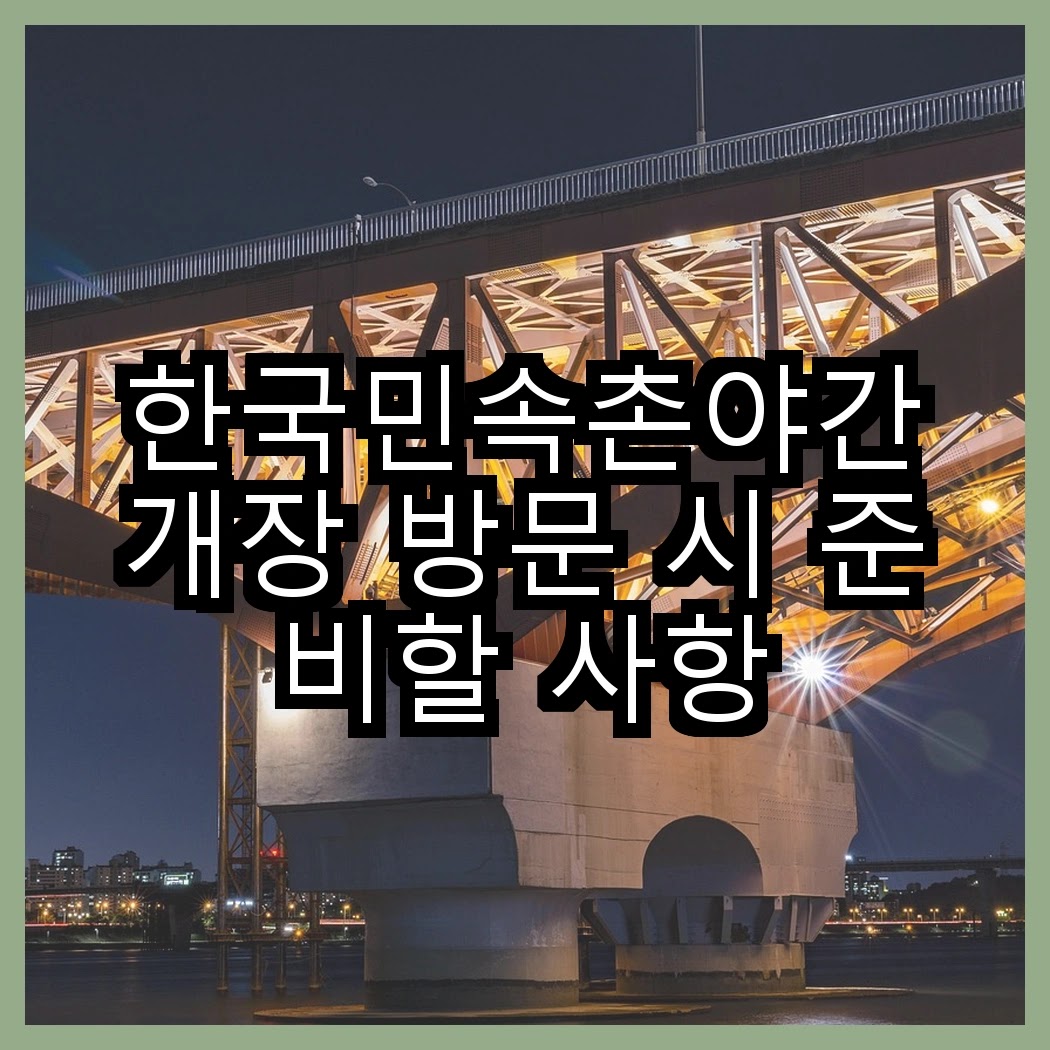 아래에서 각 항목에 대한 자세한 내용을 살펴볼게요. 한국민속촌야간개장 방문 시 준비할 사항을 알아보며 알차고 즐거운 경험을 만들어 보세요.